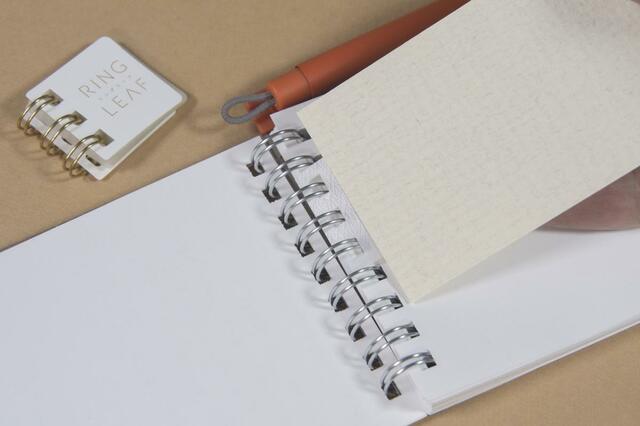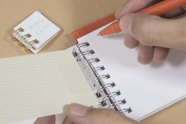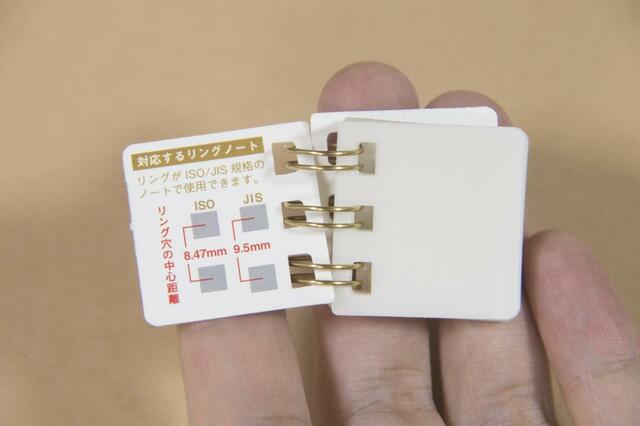 リングがISO/JIS規格のリングノートに対応しているので、一般的なノートやメモ帳なら問題なく使えます。