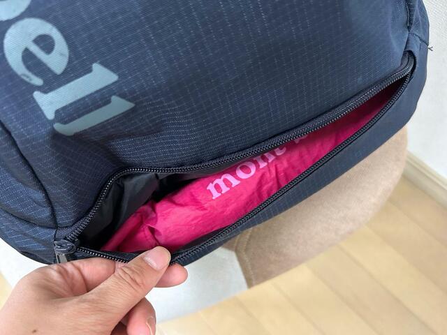 さらに折り畳み傘専用のポケットがついていて、耐水性の高い生地が使われているのがとてもありがたいです。