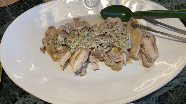 03蒸鶏の葱油ソースかけ