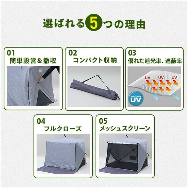 フルクローズで着替えもOK。虫の侵入を防ぎつつ風を通すメッシュスクリーンで涼感もアップ!