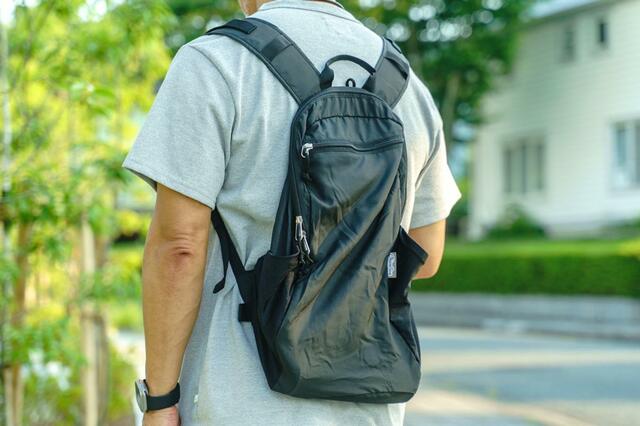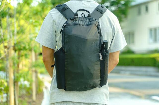 パッカブルタイプのバックパックである以上、当然ながらフレーム構造は備わっていません。そのため、荷物の入れ方によってはシルエットがやや崩れやすい点は気になるところです。