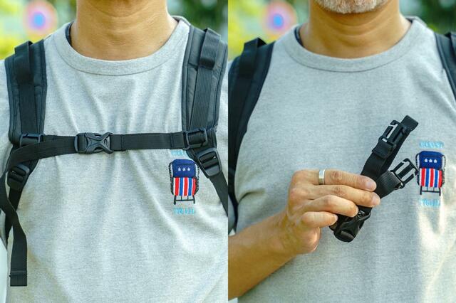 また、取り外し可能なチェストストラップも付属しており、急に軽登山やトレッキングに出かけることになっても安心。