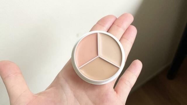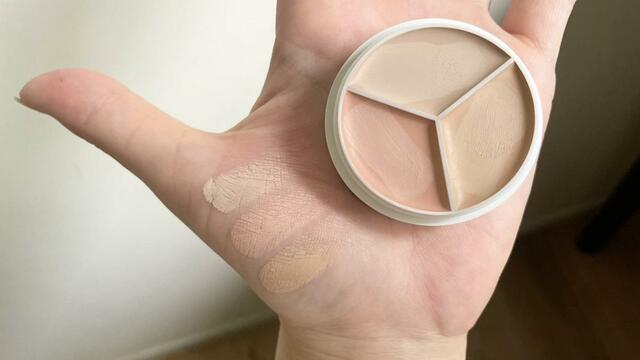 左:ナチュラルベージュ(シミカバー&ベース代わり)、上:ピンクベージュ(クマカバー&チーク代わり)、右:アイボリーベージュ(ハイライター&シミカバー)