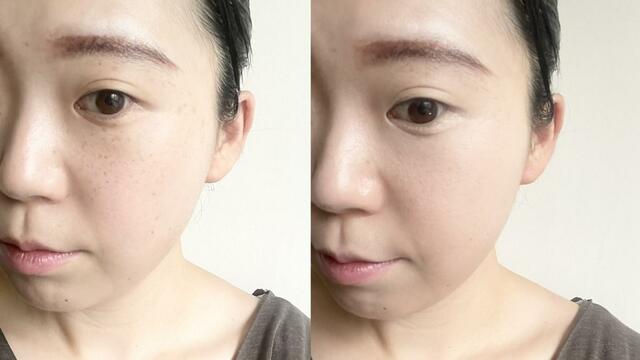 改めてすっぴんと、コンシーラー塗布&なじませた後を比較すると、こんな感じ。気になるシミ、そばかす、毛穴、まるっとカバーされたかなと!
