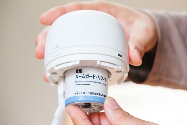 これからの時期に欠かせない蚊用の場合、空間に揮散した成分が侵入をブロックし、さらにすでに空間内にいる蚊に対しては退治する効果が期待できるのだそう。