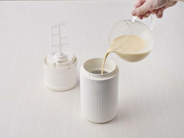 下準備が終わったら、容器に食材を入れて、本体を取り付けます。