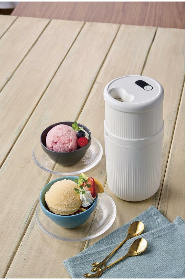 電源ボタンを押せば自動で食材をかき混ぜてくれるアイスクリームメーカーで、自宅で自分好みのアイスを作ることができます。