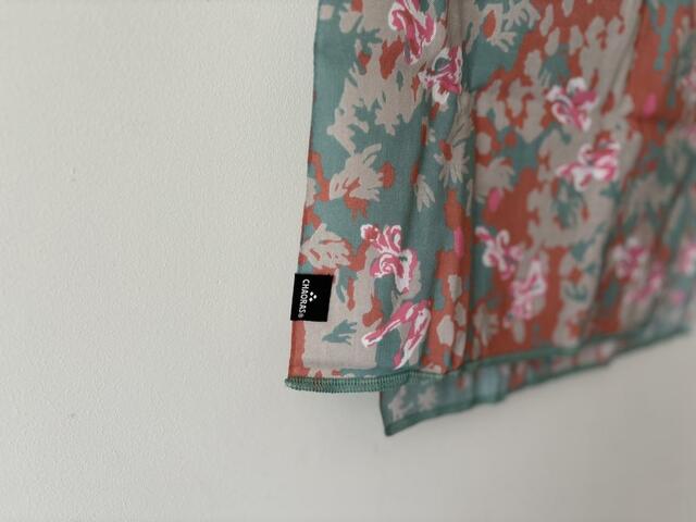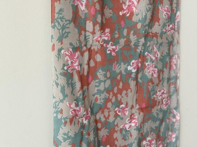 印象派のようなタッチと少しくすんだ色合いが素敵で、自然の中はもちろんふだん着にも合わせたくなります。