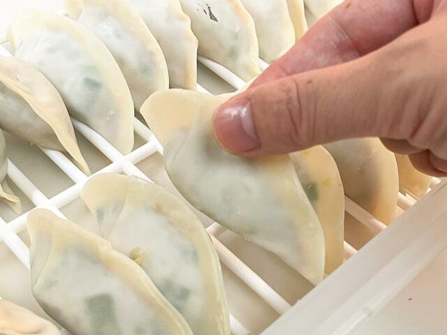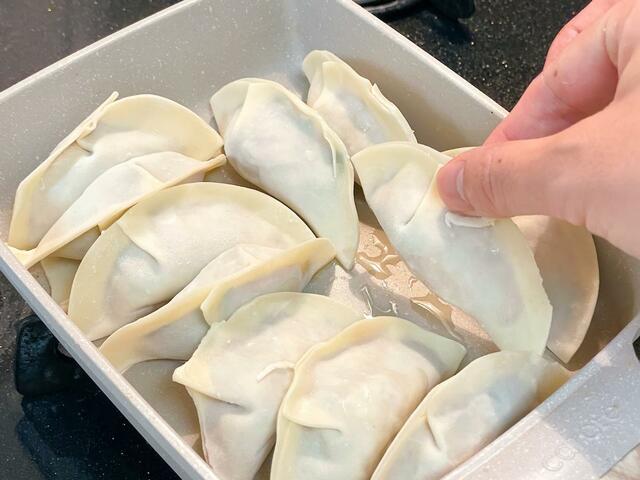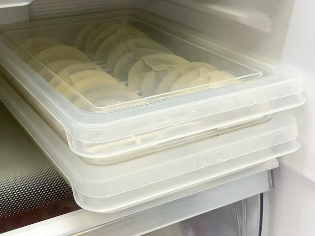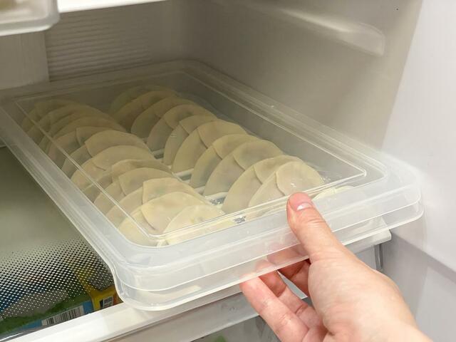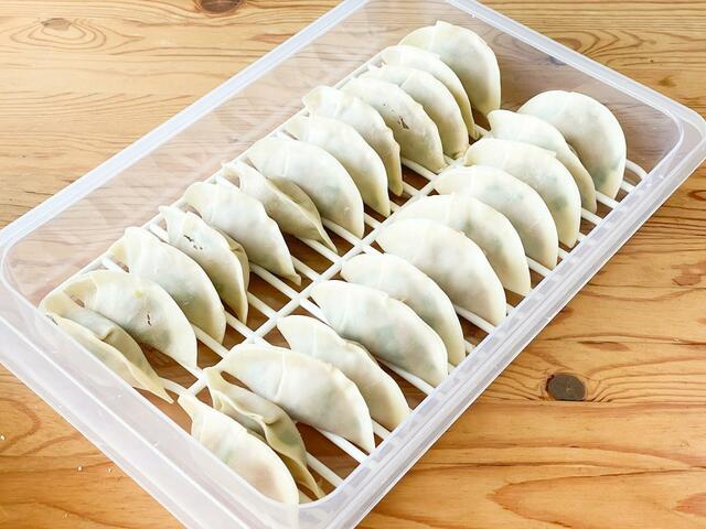 この上に餃子を載せるだけで、キレイに保存できるのだそう。実際に試してみたいと思います。