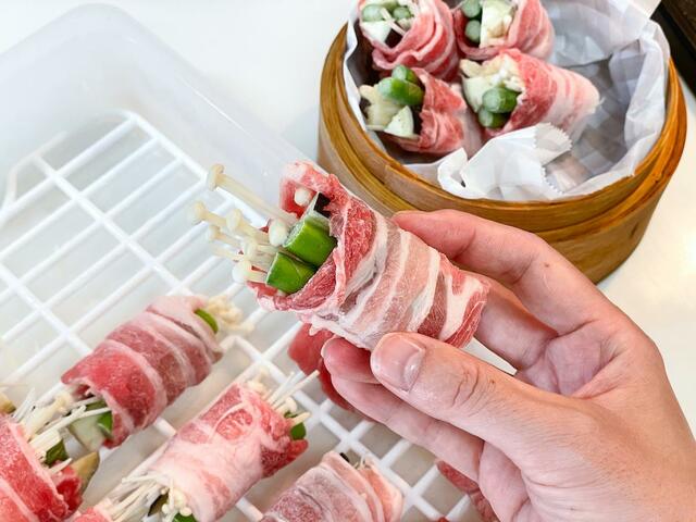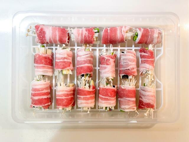 「餃子以外にも使えそう!」と思い、野菜の肉巻きにトライしてみました。