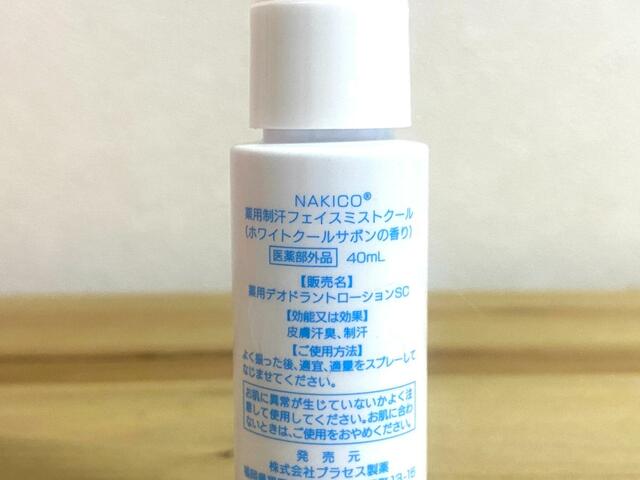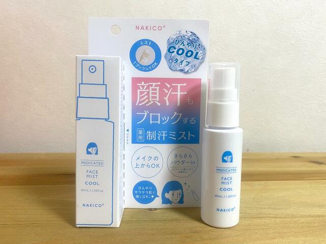 NAKICOの制汗フェイスミストは、メイクのしあげにひと吹きするだけで皮脂や顔汗を抑えてくれるというアイテムです。