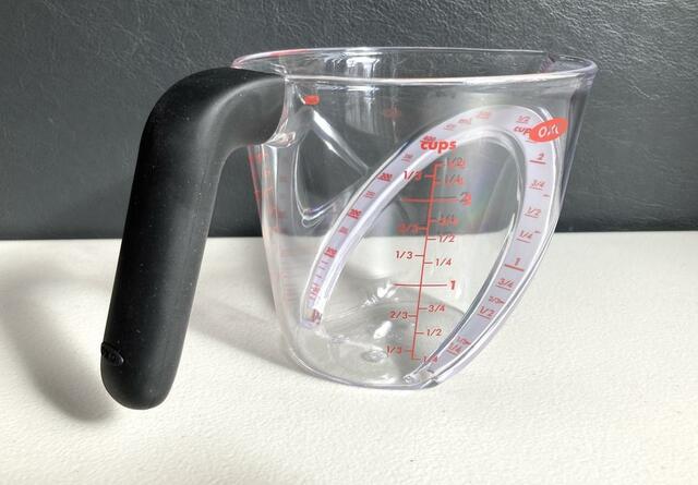 それが、キッチンツール好きにお馴染みのオクソーの計量カップ、「アングルドメジャーカップ」。