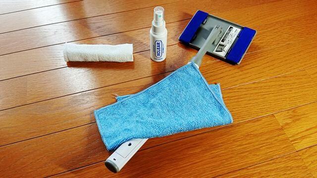 「ガラス内側専用クリーナー」にも白いクロスが付いてきますが、「車の内窓専用ワイパー」に付属している青いクロスならピッタリサイズなので、セットしやすいですよ。