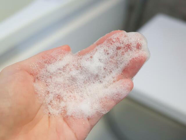 もっちりと濃密な泡で、少量でもモクモクと泡立つように感じました。