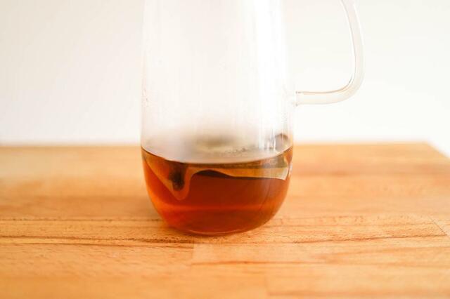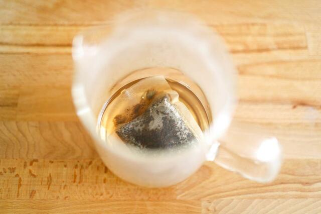 電子レンジから取り出したら麦茶パックを入れて、約5分間抽出。