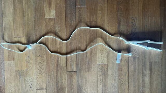 ひとつは、コードの長さが約2.5mとかなり長めなこと。外出先など、コンセントから離れているところで使うにはむしろいいのかもしれませんが、毎日洗面台で使うにはちょっと長めです。