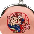 ミルキーフラワー柄をバックにペコちゃんとしろたん、そしてお友だちの「らっこいぬ」「しぇる」「らむね」が描かれたデザインがひとつ。