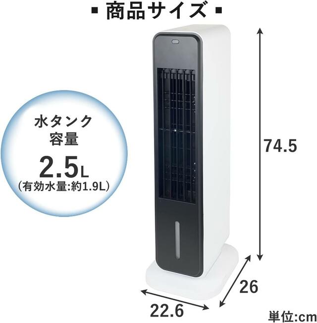 本体は幅22.6×奥行26×高さ74.5cmと、省スペースで設置できるのも◎。