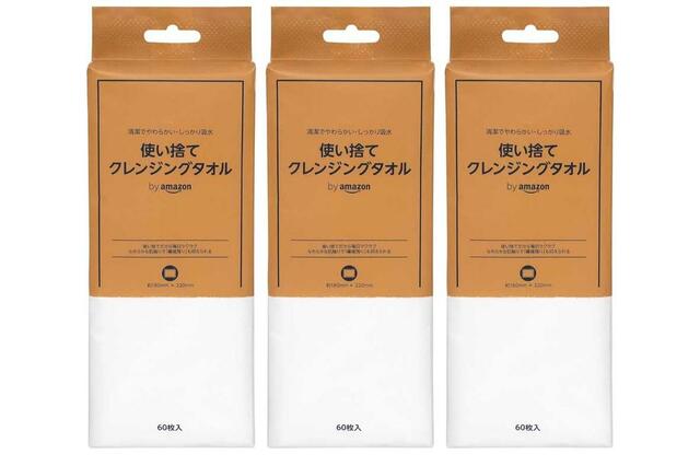 by Amazonの「使い捨て クレンジングタオル」は、洗顔後の水気を拭き取るためのアイテム。