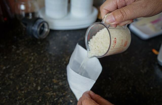 入れすぎてしまうと米が膨張し、袋からあふれてしまう恐れがあるので注意してください。