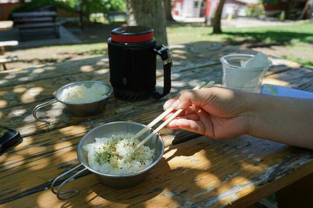 ただ、野外でご飯を炊くのって意外に手間がかかり面倒なんですよね。お米を炊いた鍋は洗うのも大変!