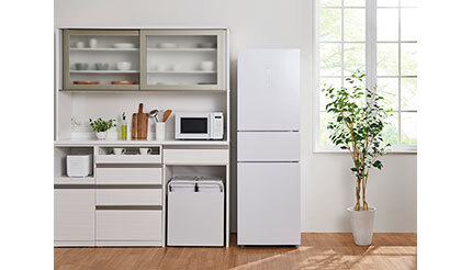 「まんなか切替冷蔵庫」は、庫内容量271Lと2~3人暮らしに適したサイズで、135Lの冷蔵室と100Lの冷凍室を備えている。