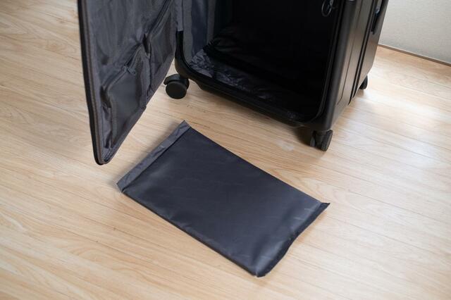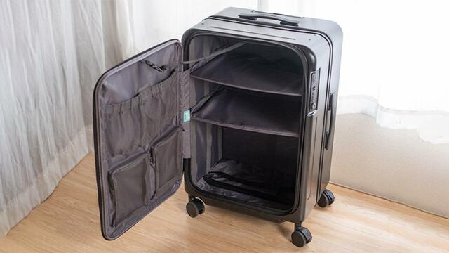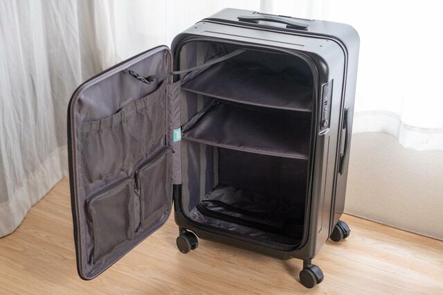 立てた状態のまま荷物を出し入れできるから、もう空港の床にスーツケースを寝かせて広げる必要はありません。