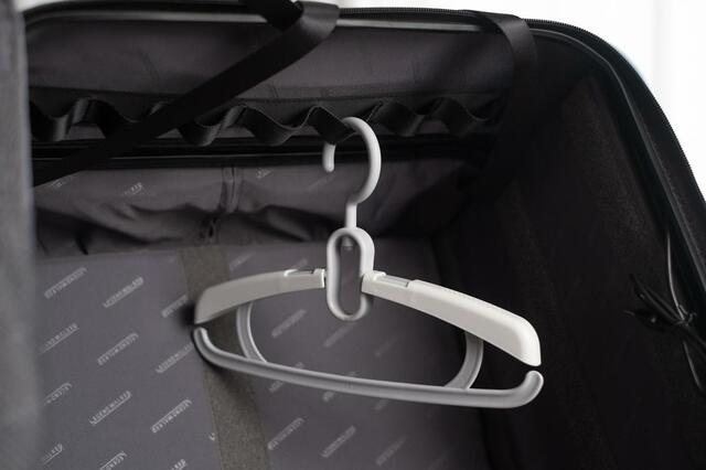 スーツケースの幅に伸縮できる専用のハンガーも付属。