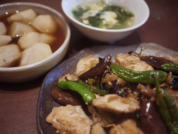レシピを見ながら、無事主菜、副菜、汁物を完成させることができました(カジキマグロがなかったため鳥ムネ肉で代用)。