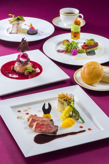 スペシャルコース 8,700円|マゼランズ|鮪のタルタルとバジル風味のクスクス、ガトー仕立て海老のコンソメジュレ添え イトヨリのポワレとシーフードのムース、ヴァンブランソース 黒毛和牛のロースト、キノコのフランとヴァンルージュソース パン チョコレートムースケーキとカシスアイス コーヒーまたは紅茶|東京ディズニーシー「ディズニー・ハロウィーン」2018 ©︎Disney