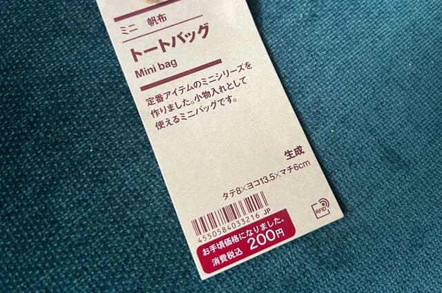 無印良品「ミニ 帆布 トートバッグ」490円(税込)