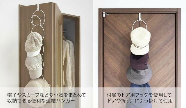 付属のフックでドアに設置すれば、簡単に帽子の定位置が誕生。出かける前に「あれ、どこ置いたっけ?」と探すこともなくなりますよ。