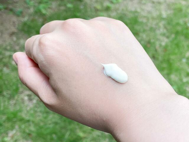 手の甲に出してみると、ちょんっとツノが立つぐらいの濃厚なクリーム。