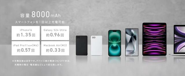 「5,000mAhはやや不安で、10,000mAhあれば安心!」と多くの人が認識している中、8,000mAhで製品化してくるCIO、なかなかの策士ですねぇ。