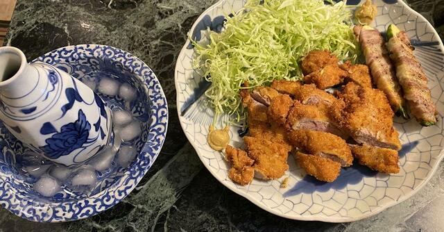 豚肩ロースのトンカツ、ズッキーニの肉巻き焼き。