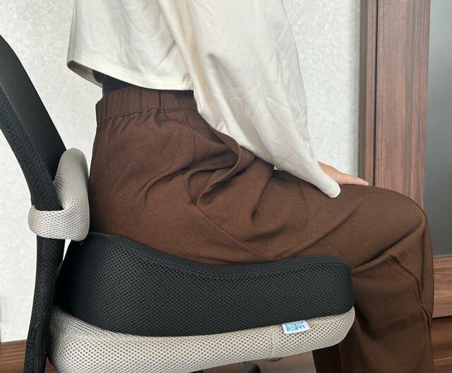 立体的なクッションでお尻を支え、自然と背筋が伸びる姿勢に導いてくれるので、腰まわりがラクになったと感じます。