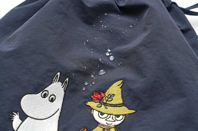 ムーミン、リトルミイ、スナフキン、スティンキーやソフスといったおなじみのキャラクターが刺繍された「2wayナップサック」。