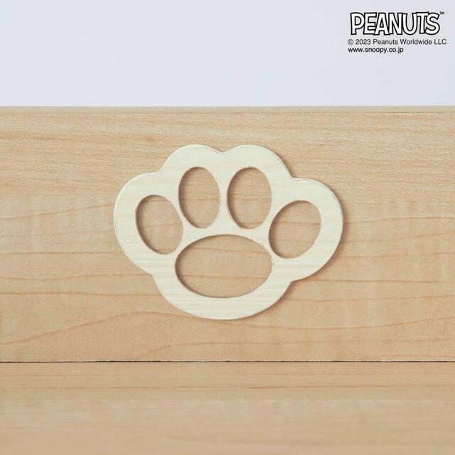右下の扉にあしらわれたスヌーピーモチーフや、天板奥の足あとマークなど、ファンにはたまらないかわいいアクセントも満載ですよ♪