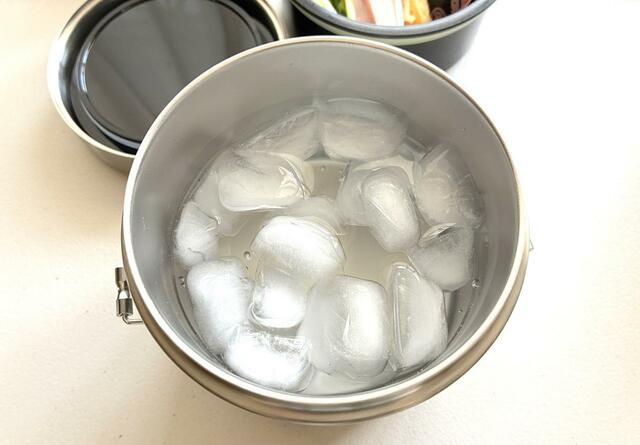 まずは、「超軽量真空ステンレスランチボックス」を予冷します。