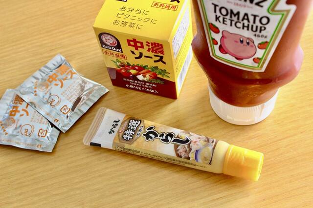 味つけに使うのは、中濃ソース、ケチャップ、からし。以上!