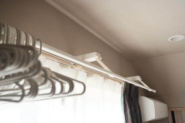 ワイヤータイプやクギでしっかり設置するものまでいろいろ見ましたが、カーテン物干しはカーテンレールの下地を利用して設置できる点が決め手で、2年ほど前に購入しました。