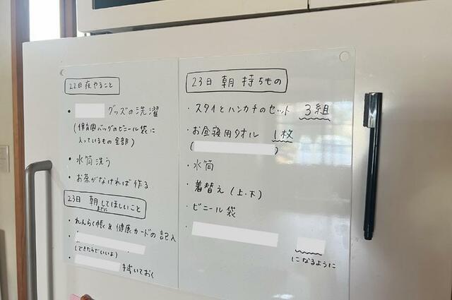 いつも子どもの保育園の準備はわたしが担当しているのですが、この日は外泊する予定があり夫にバトンパス。慣れていないとけっこう手こずってしまうなと思い、ひとつずつ書き出してから家を出ました。