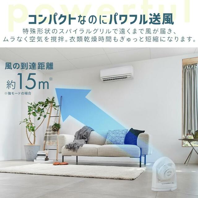 パワーの秘密は特殊形状のスパイラルグリルで、風の到達距離は約15mと広い部屋でも空気を循環させることが可能に。