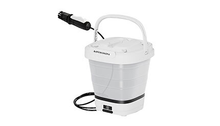 「G-MSWH01」は、どこでも持ち運び可能なバケツ一体型モバイル洗浄機で、充電式のため電源も水栓も必要なく、コンパクトに折りたためるので持ち運びしやすく、収納時も場所を取らない。毎日のちょっとした掃除や植栽の水やり、キャンプや海水浴といった、さまざまなシーンで使用できる。