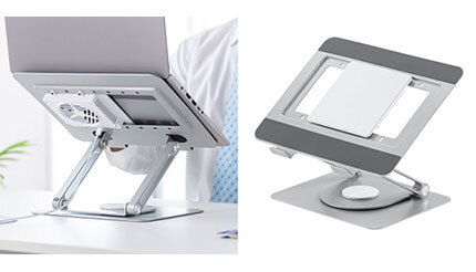 スタンドの高さと角度は、作業環境に合わせて細かく調整可能で、滑らかに動く2つの関節で理想の姿勢を実現する。また、台座は360°回転するためどんなワークスペースにもフィットするほか、ウェブ会議やプレゼンテーションの際にも役立つ。