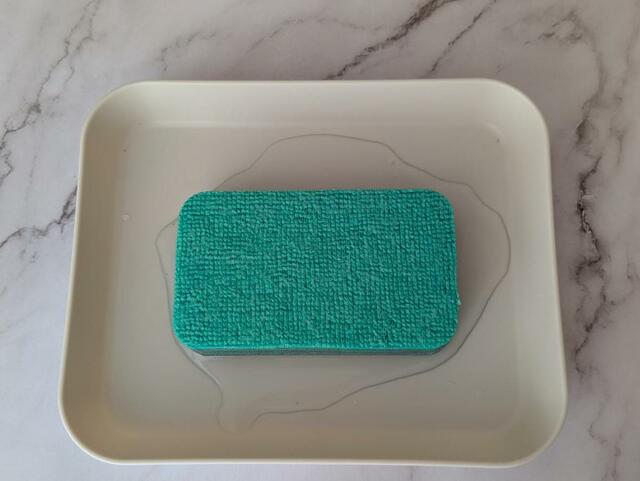 水を入れたバットにスポンジを置くと、あっという間に水を吸い上げてくれました。
