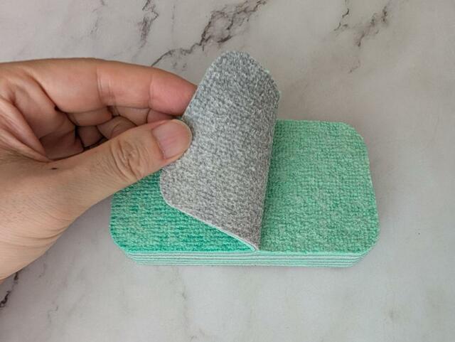 ニトリで見つけた「はがせる超吸水スポンジ」はその名のとおり、はがして使えるのが特徴のスポンジです。