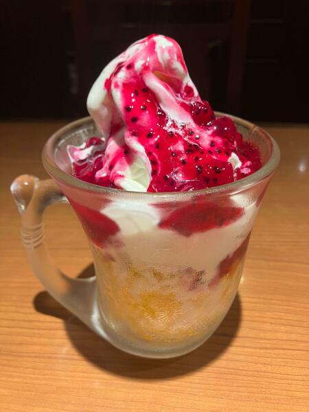 ソフトに合わせてあるドラゴンフルーツソースもいい感じ。果肉たっぷり、トロピカルなテイストも感じられて、甘さもしっかりあるのにしつこくないんです。