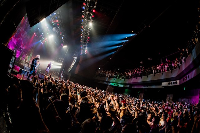 lynch.に関するエピソードを語りつつ、「頑張っていたら、いつか共演する事もできると思っていたら、こんな素敵なツーマンという、本当にバンドやってて良かったな。この場を借りて、皆に感謝です。ありがとうございます」と述べると、大きな、暖かい拍手に包まれる。