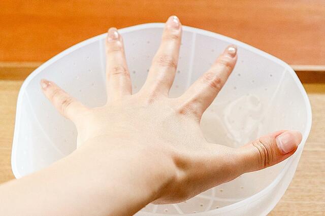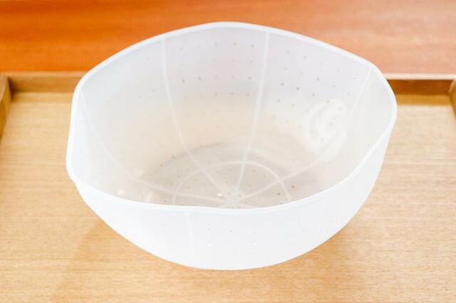 収納のしやすさも利便性もバッチリで、お手入れもカンタンなシリコンざる。